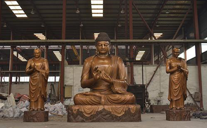 我廠專業(yè)致力于銅佛像雕塑設計、制作、安裝,配以嫻熟精致的唐彩工藝、貼金工藝等多種表面裝飾工藝技術(shù),輔以佛法教理,誠心雕塑,用心制作,所塑諸佛、菩薩圣像皆如法如儀,相好莊嚴,讓瞻仰者生歡喜心和恭敬心。