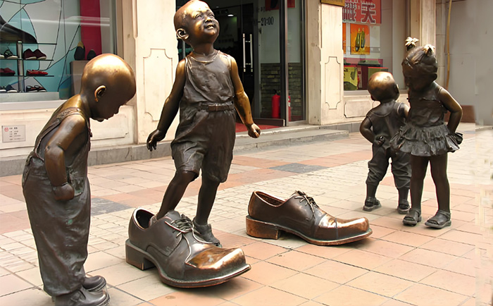 在繁華的步行街上,銅雕不僅是裝飾,更是城市記憶的載體。我們以數(shù)十年鑄銅工藝,將市井百態(tài)凝鑄成永恒。